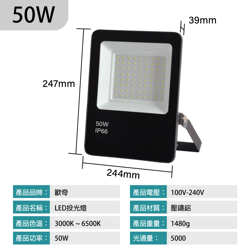 【青禾坊】歐奇OC 50W LED 戶外防水投光燈 投射燈 (超薄 IP66投射燈 CNS認證 )