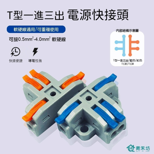 【青禾坊】 T型1進3出電線連接器 (電線連接器/快速接頭/接線端子/快接頭/電火布)