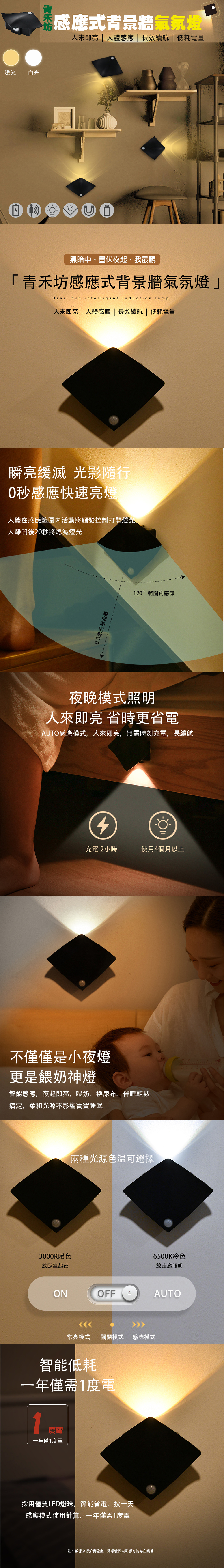 【青禾坊】感應式背景牆氣氛燈『2入組』 (USB 洗牆燈 感應燈 情境燈)