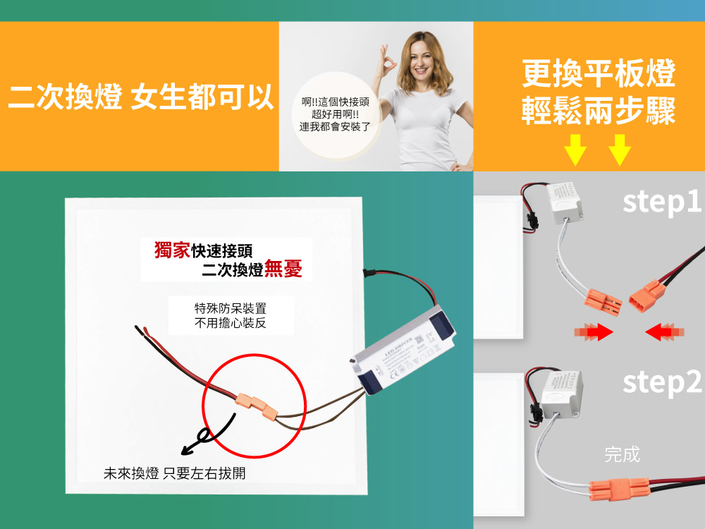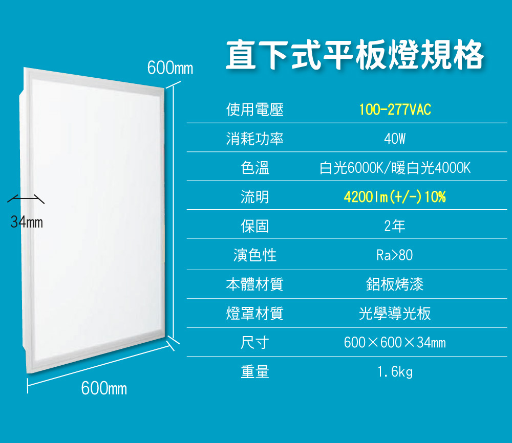 商品內容 輕鋼架平板燈X1 40W驅動器X1 快速接頭X1