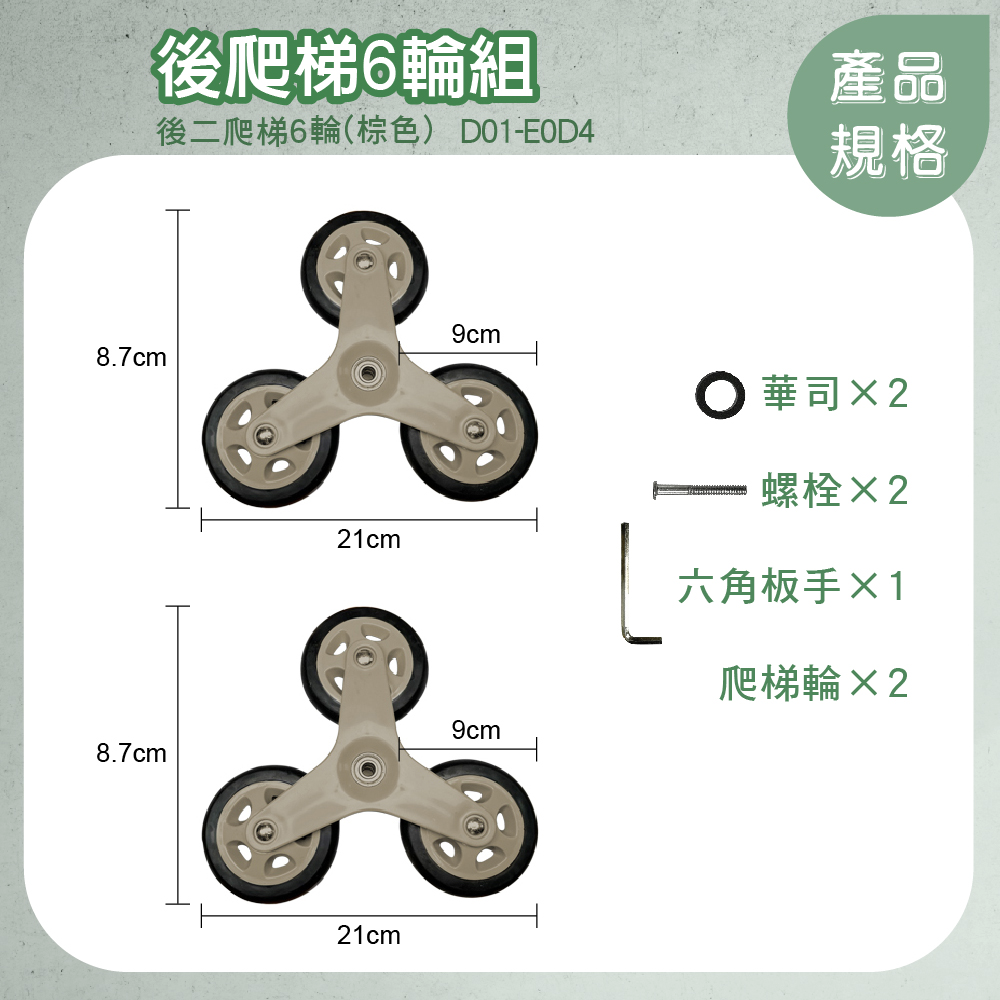 • 特仕升級/餐桌版版-後二爬梯輪-棕色 特仕升級/餐桌版版-後二爬梯輪-棕色