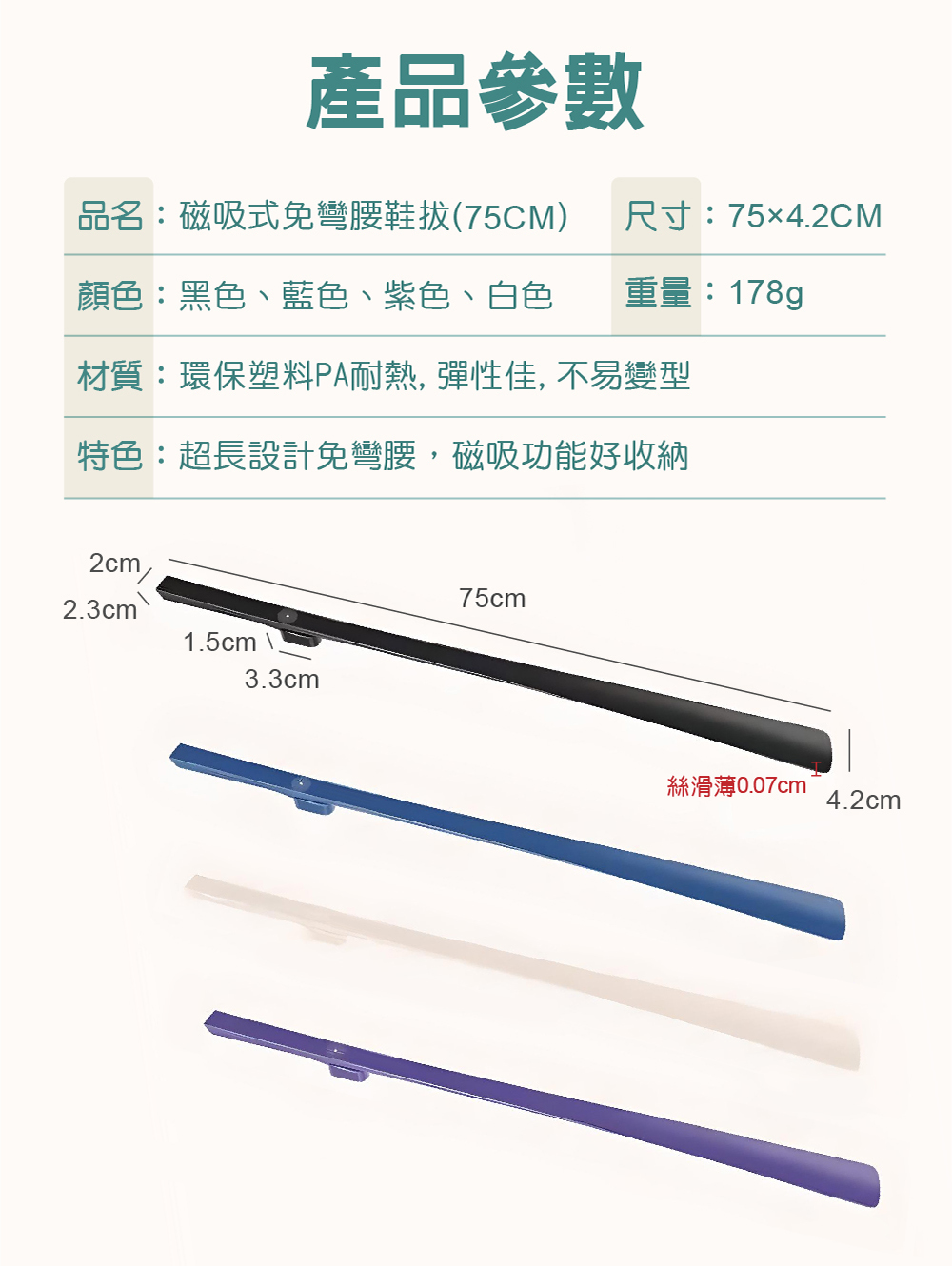 【青禾坊】磁吸式免彎腰鞋拔(75CM) (穿鞋輔助器/穿鞋神器/免彎腰穿鞋/長柄穿鞋神器/孕婦老人自穿鞋/鞋把/鞋撐)