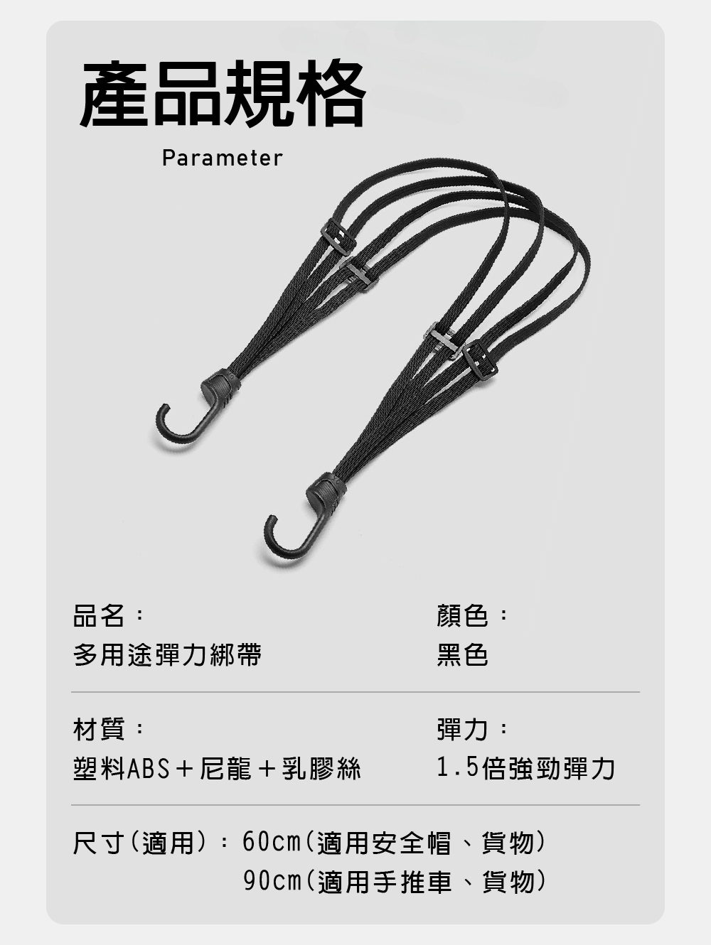 【青禾坊】多用途彈力綁帶-2入 (收納帶/摩託車綁帶/汽車後備箱綁帶/置物綁帶/網繩/彈力繩鈎帶/貨架繩/捆綁繩)