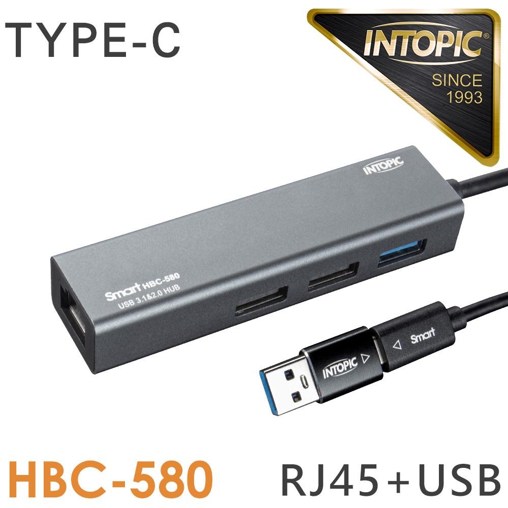 INTOPIC  USB3.1 & RJ45 鋁合金集線器 (HBC-580) ~~限時限量促銷,售完為止