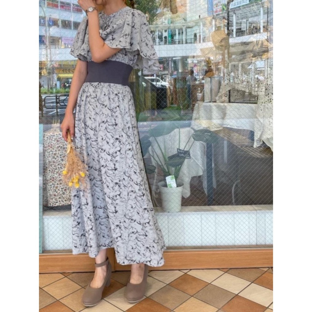 ケープのようなフレアー袖のデザインが華やかなコルセットワンピース♪
