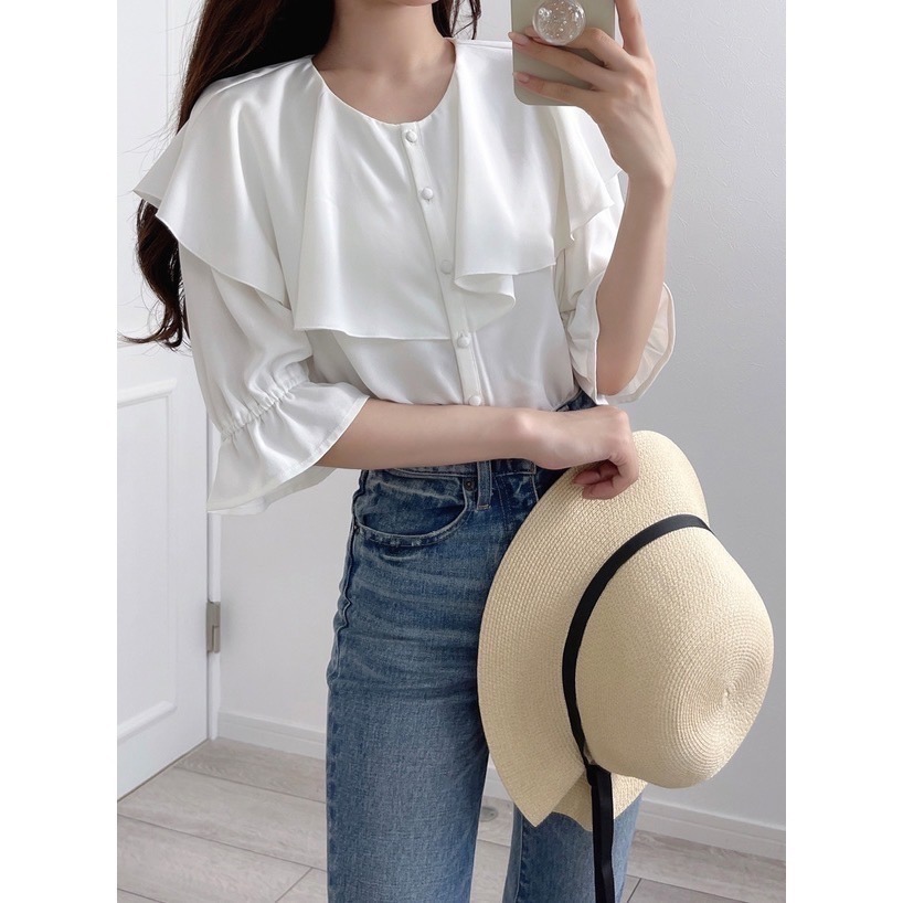 ビッグカラーでエッジの効いたルックスに仕上げる。