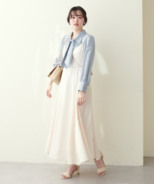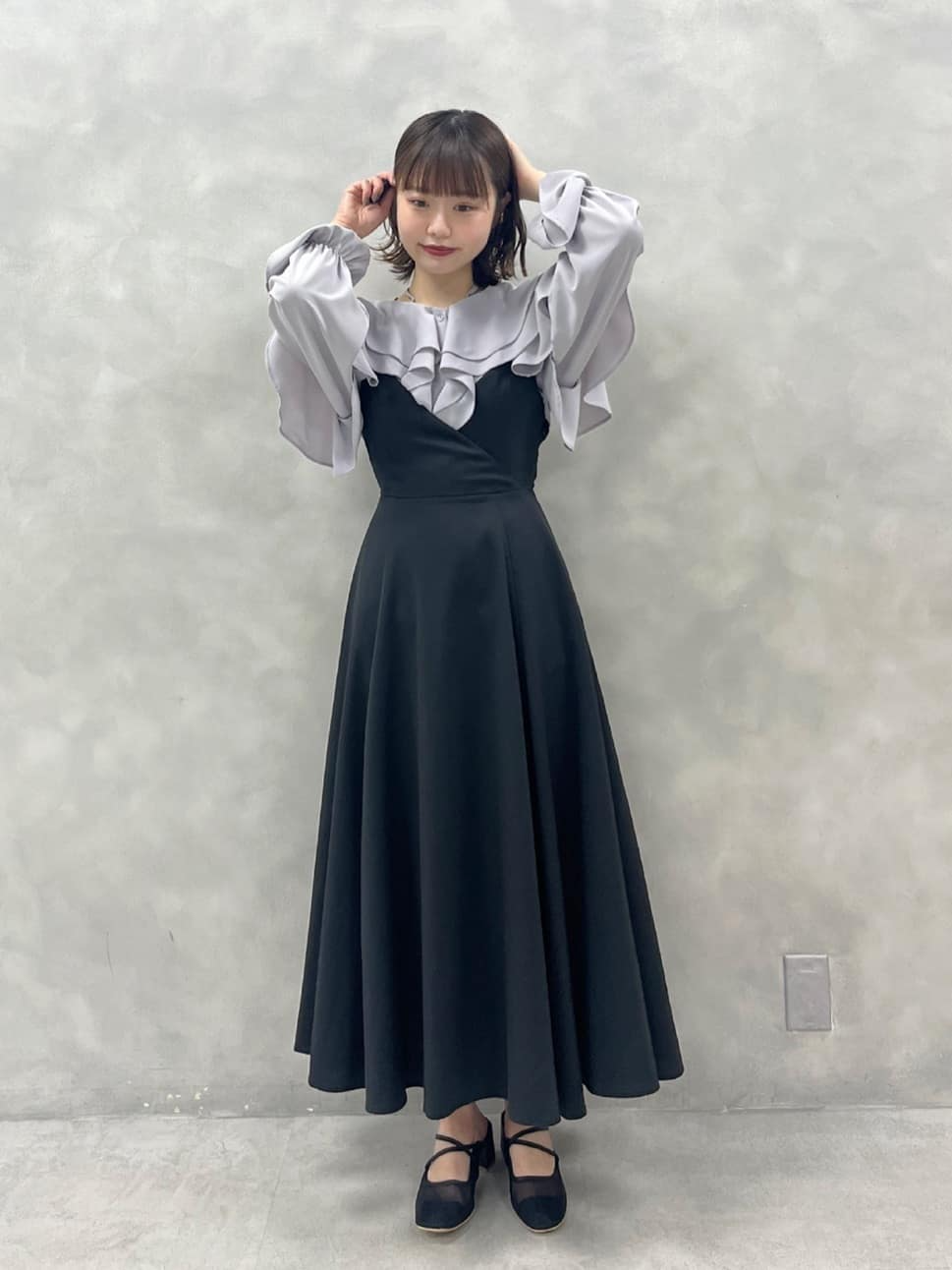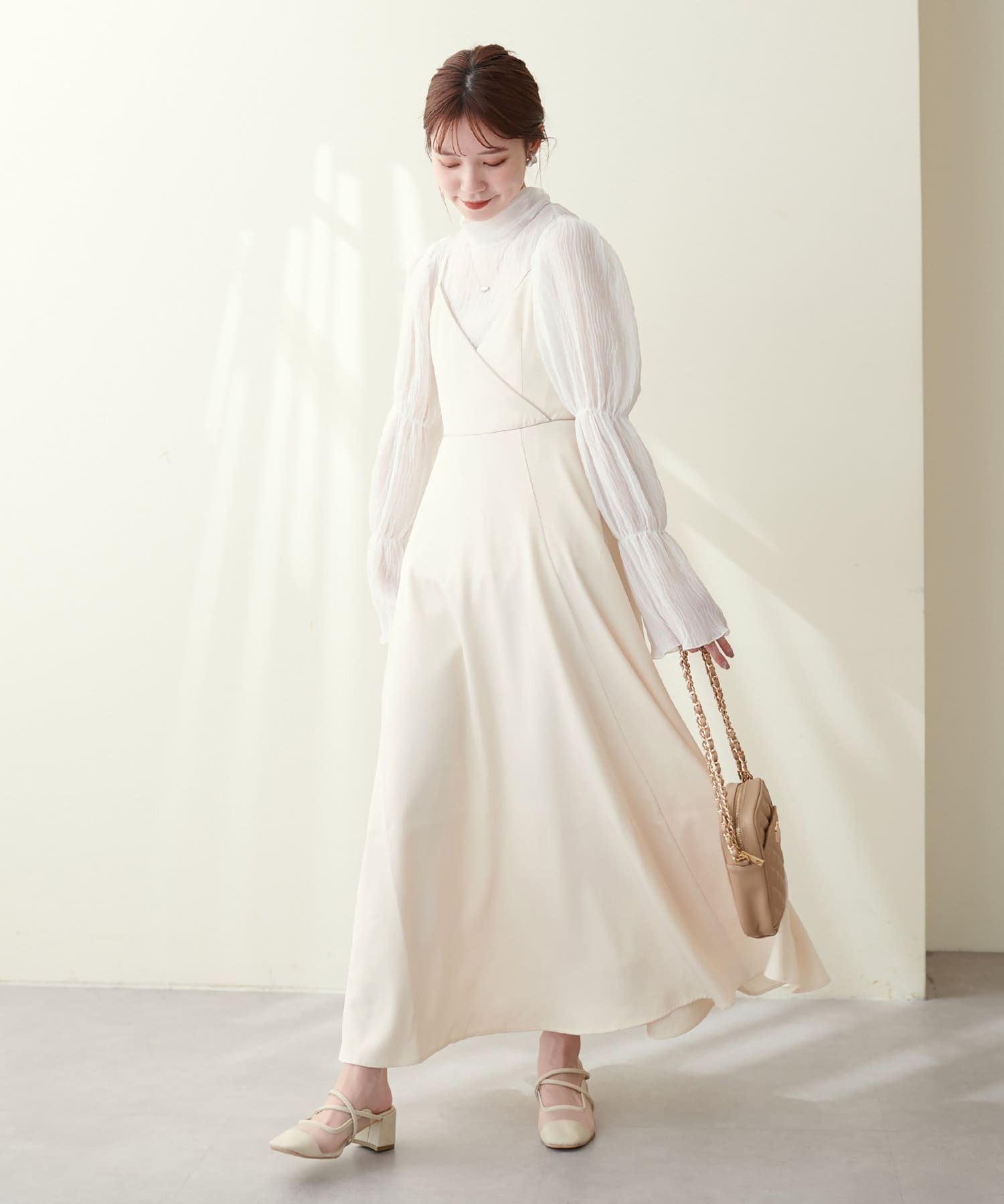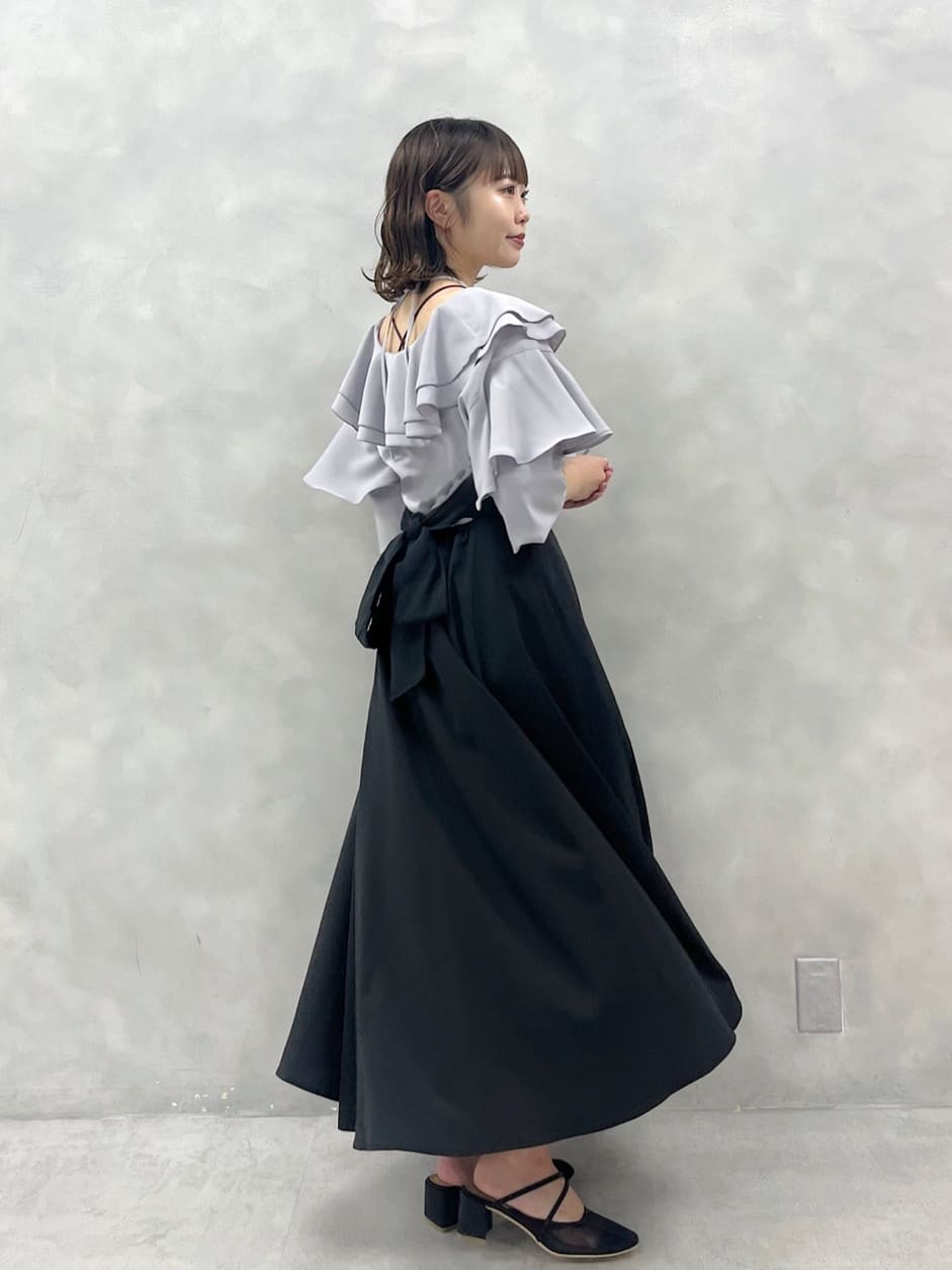 ややドレープの効いたふんわり広がるフレアラインのスカートが歩くたびに揺れて、華やかな印象を与えます。