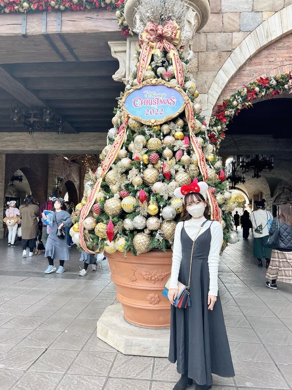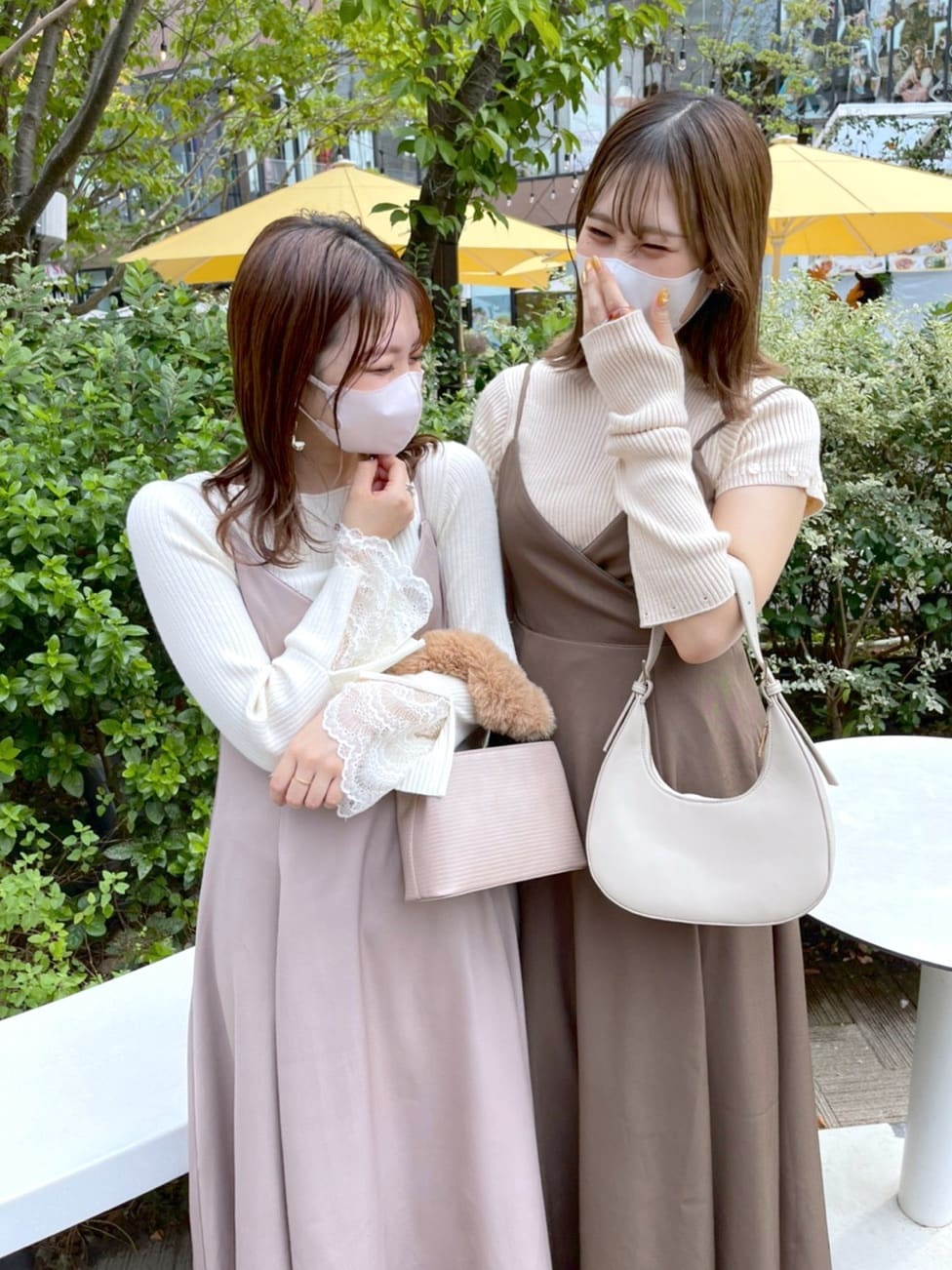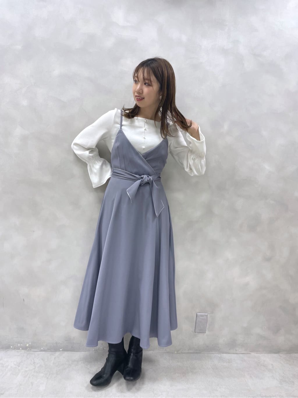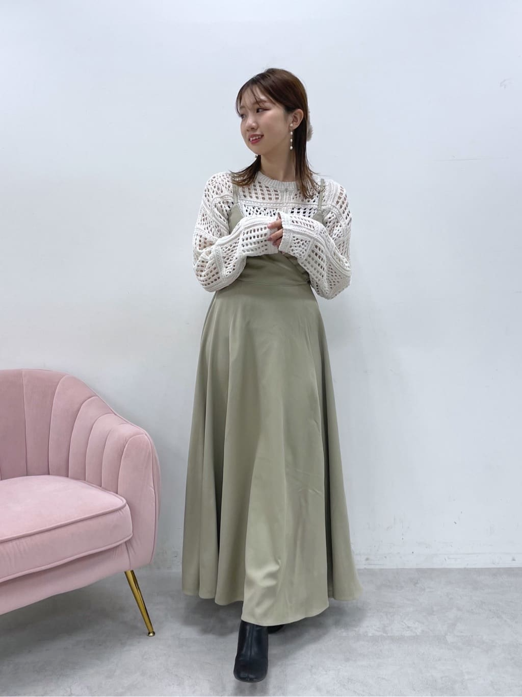 ショート丈のニットをワンピの上に着て、レイヤードスタイルでも秋冬らしく決まります。