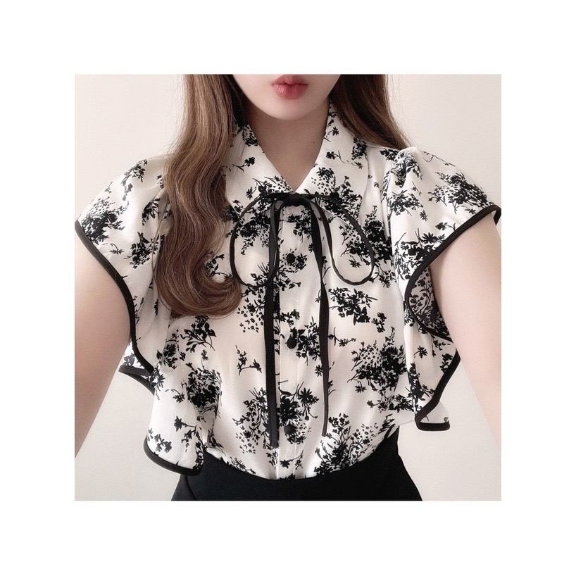 着こなしをクラスアップさせる大人に似合うフラワー柄のブラウス。