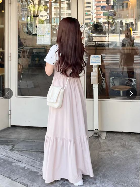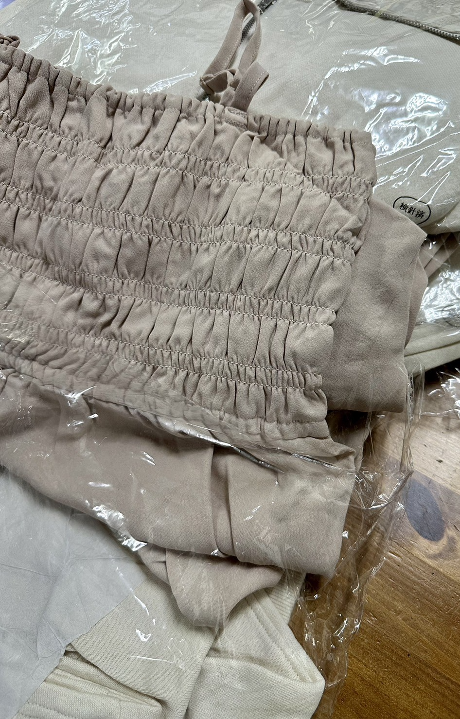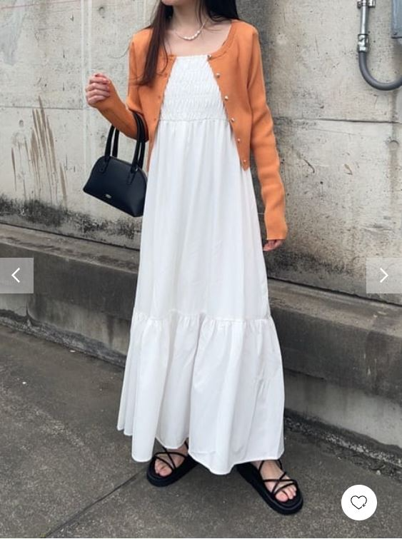 胸元がシャーリングになっているので上から重ね着をしてももたつかないデザインに。