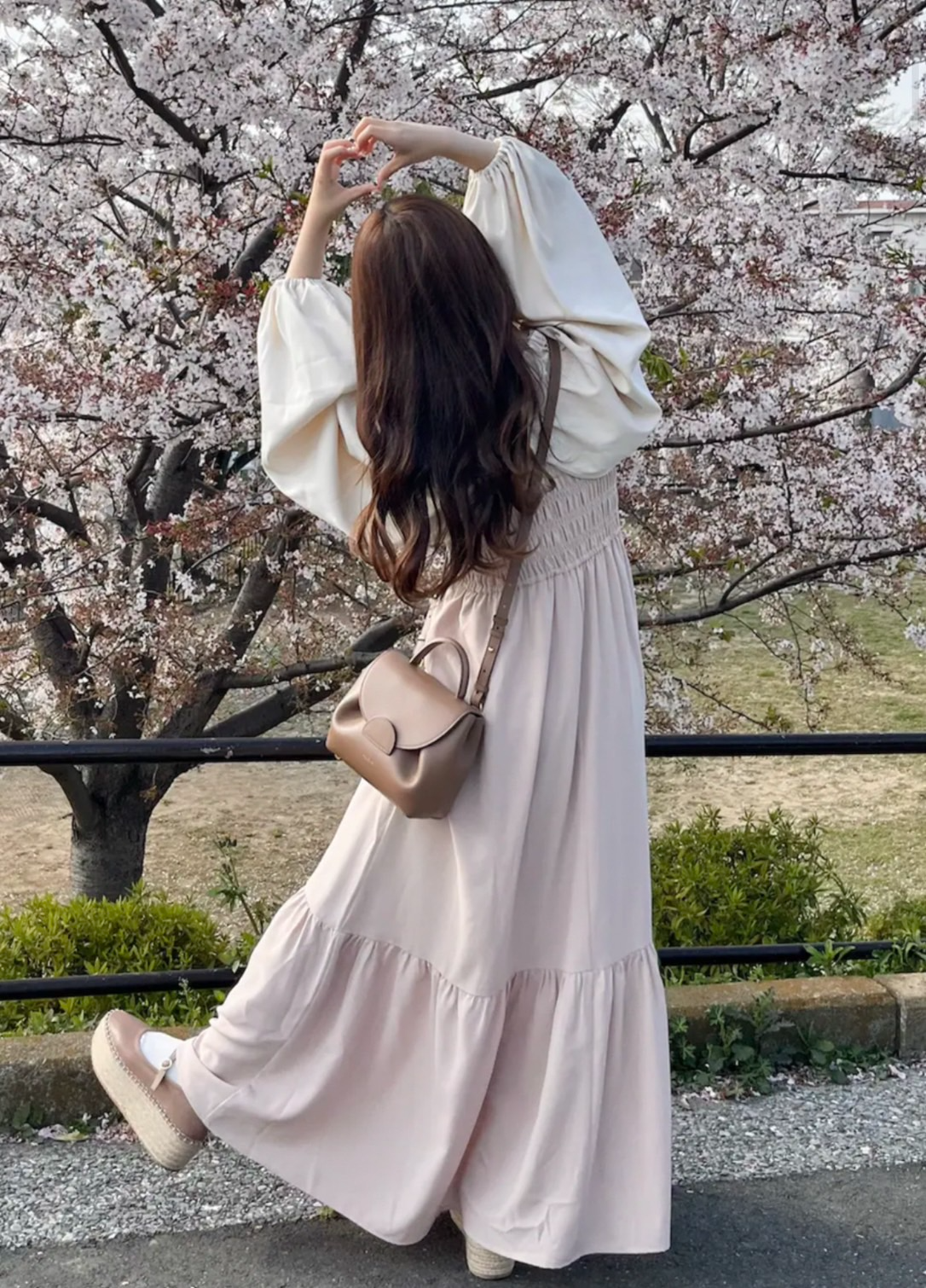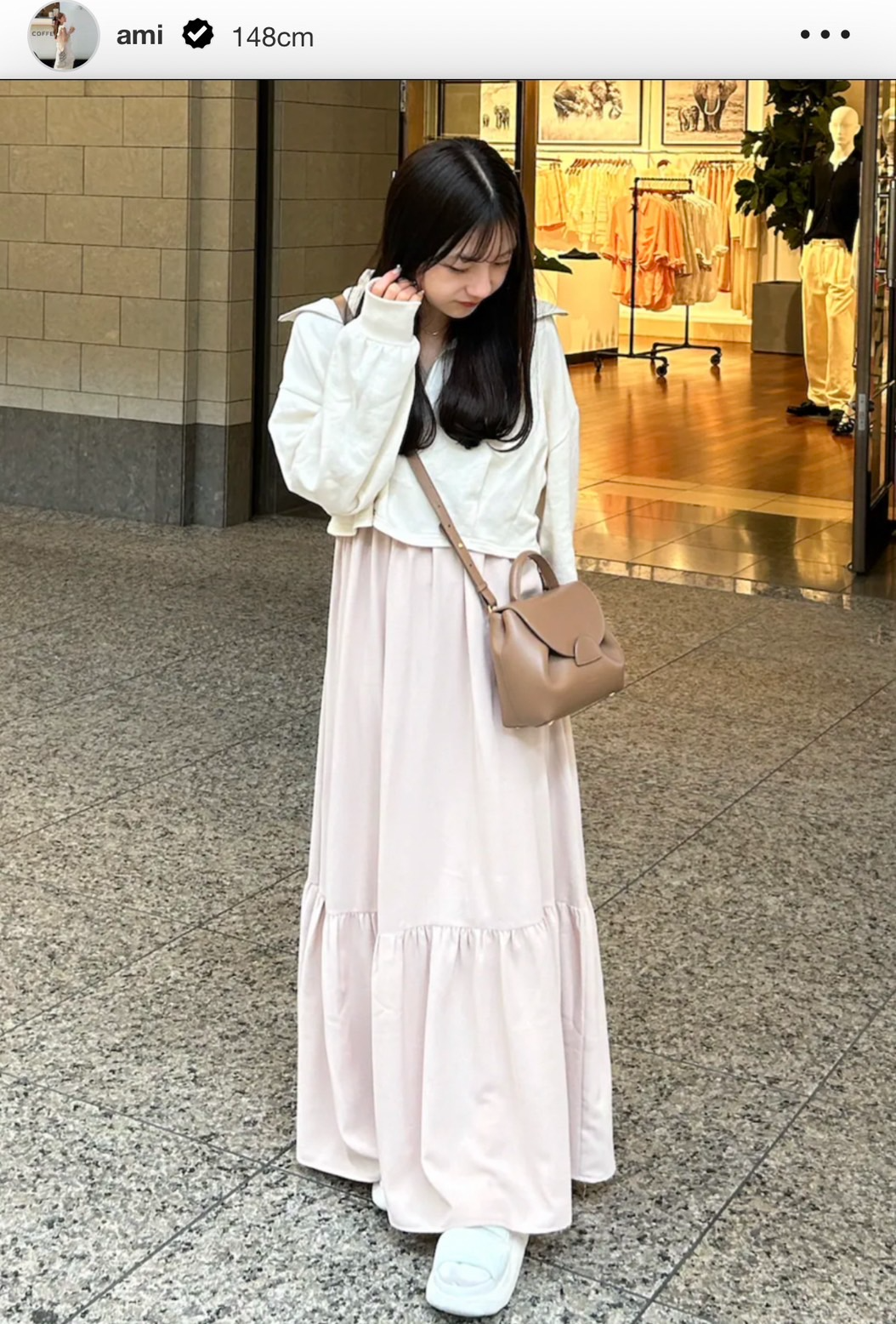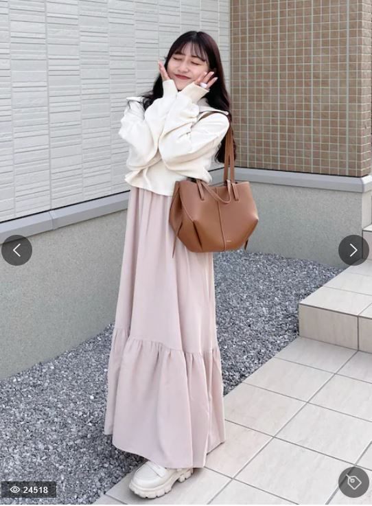丸いシルエットになるように入ったタックは目線を高く見せてくれます。