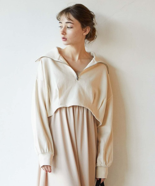 トレンドのハーフzipスウェットがセットになったワンピース。
