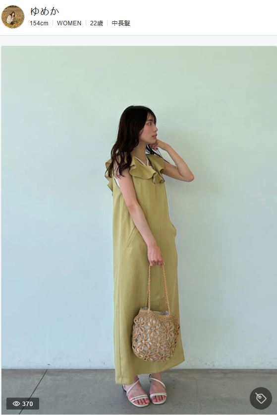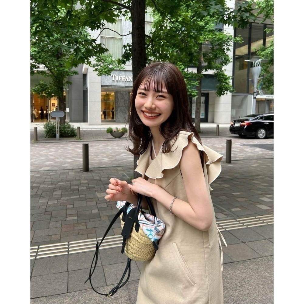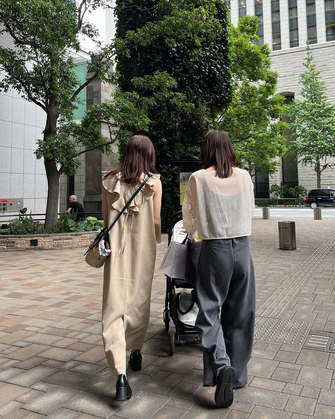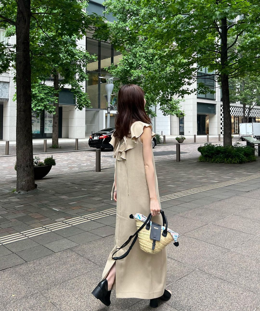 フリルが肩回りをカバーしてくれるので、ノースリーブタイプでありながらも肩や二の腕辺りをすっきりと見せてくれます。