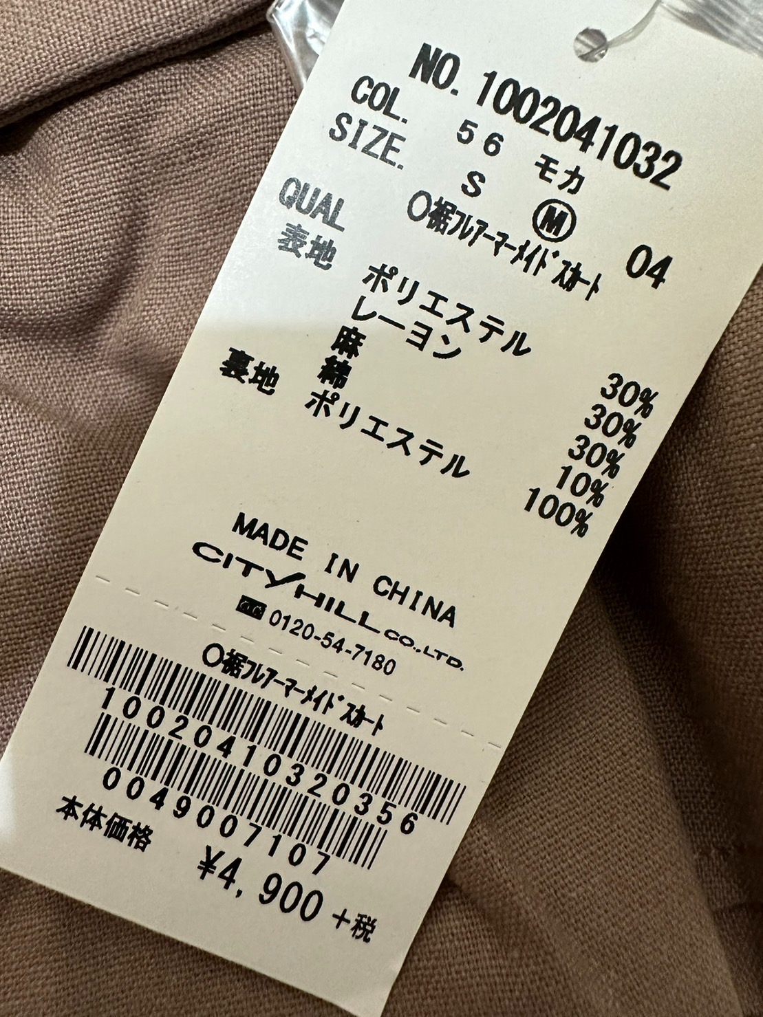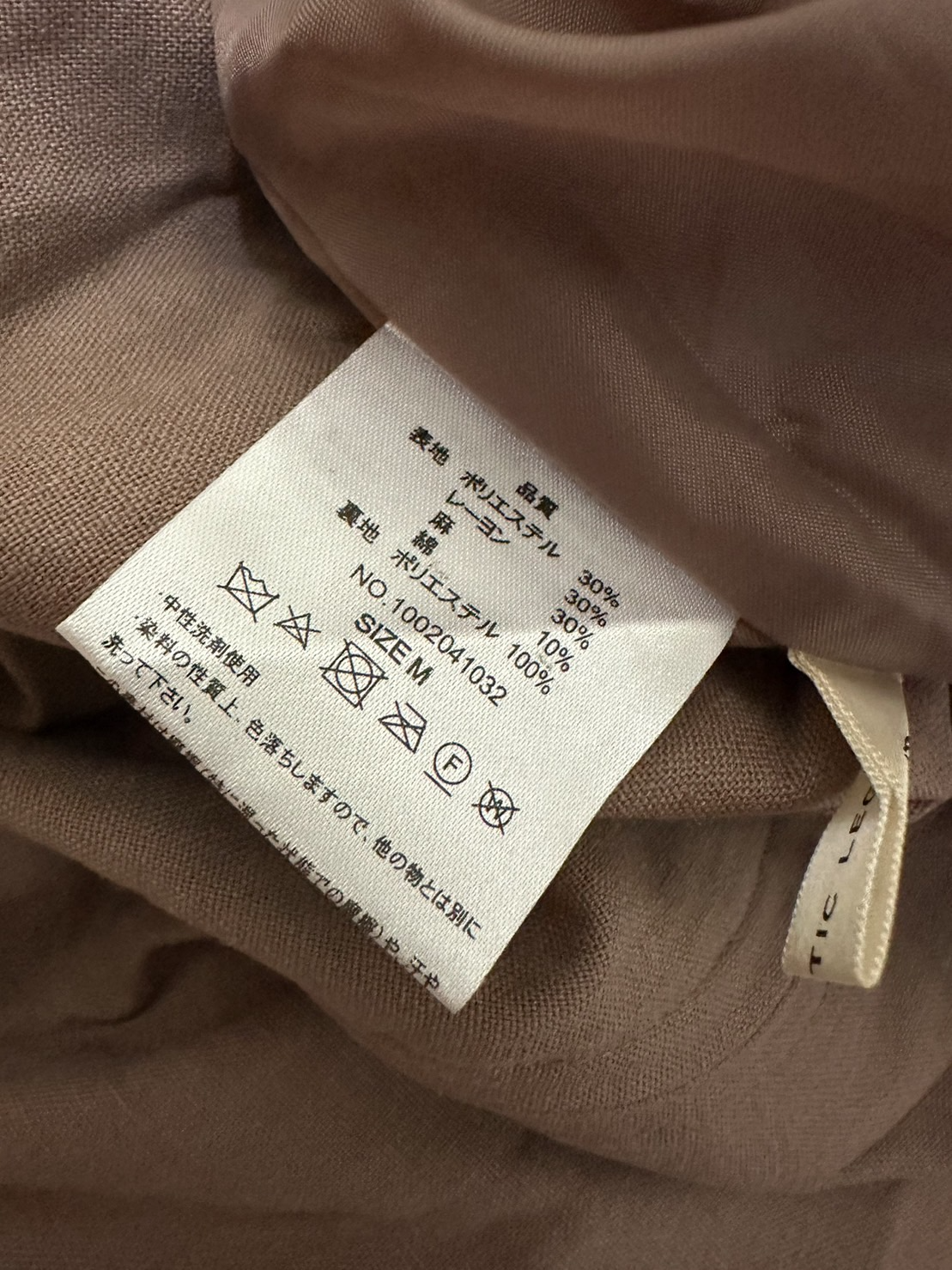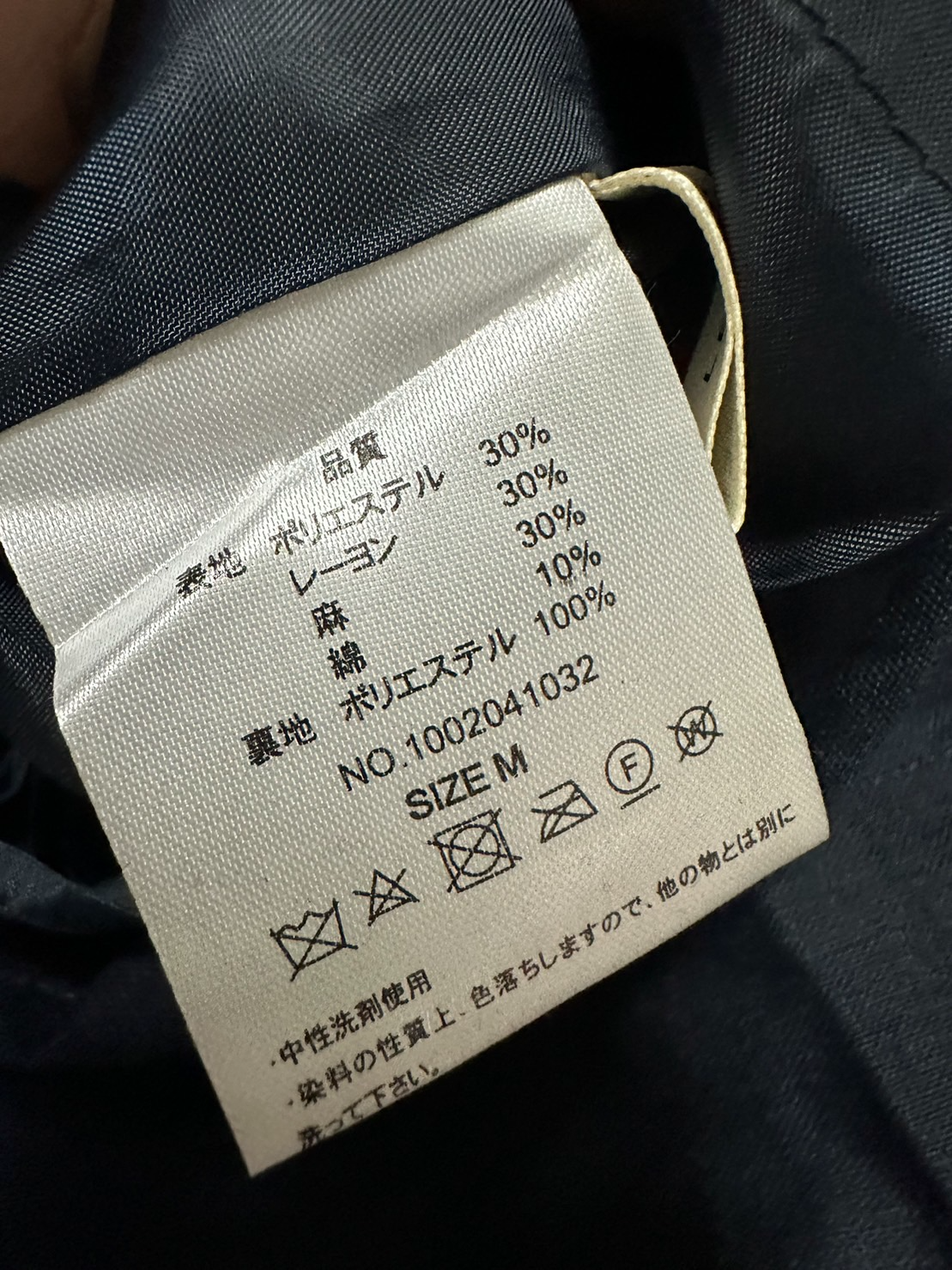 面料成分:主體部分30%聚酯纖維、30%嫘縈、30%麻、10%綿,內裏部分100%聚脂纖維