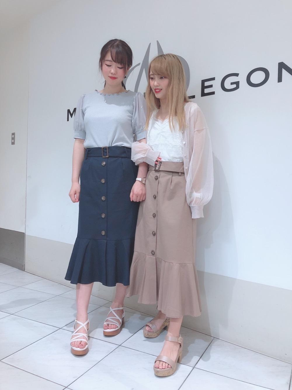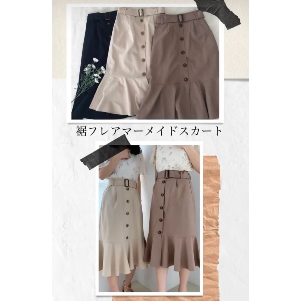 裾に向かって広がるフレアラインで、フェミニンムードを盛り上げるマーメイドスカート♪