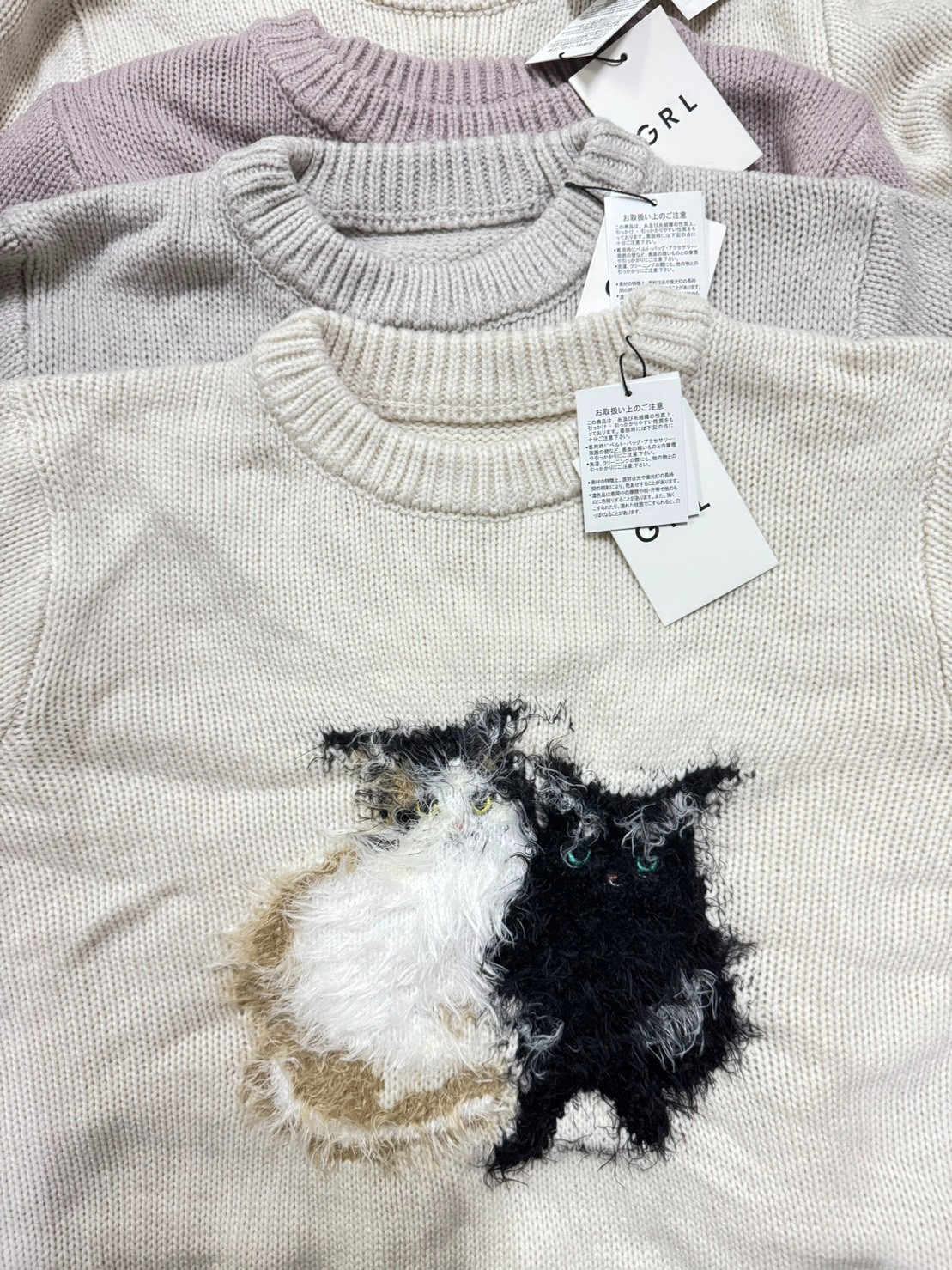 長い毛足で立体感を出した猫のジャガードがアイキャッチなアイテム。