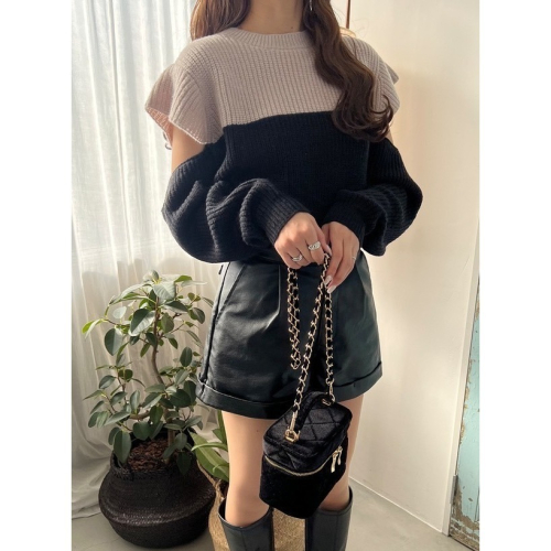 バイカラーで仕上げたトップスは、キャッチーで洗練された雰囲気を演出。