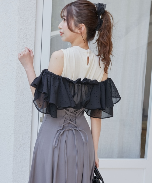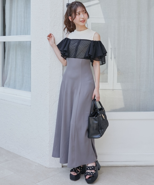 ワンピース+肩あきデザインなので1枚で着ていただくと着映え間違いなし◎