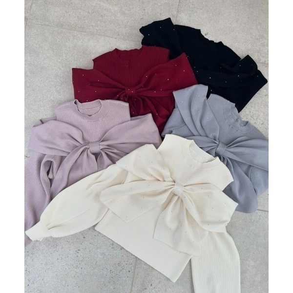 フロントの大きいリボンが目を惹くニット。