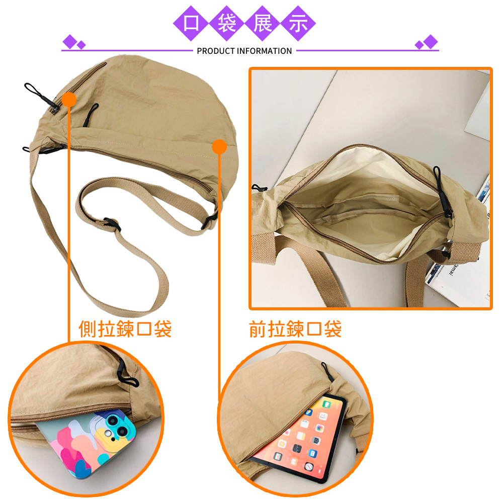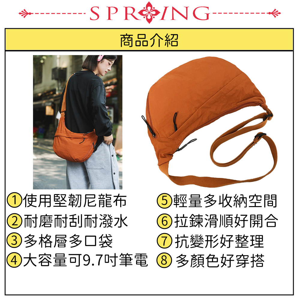 SPRING-輕量大容量時尚彎月尼龍肩背包斜背包 腋下