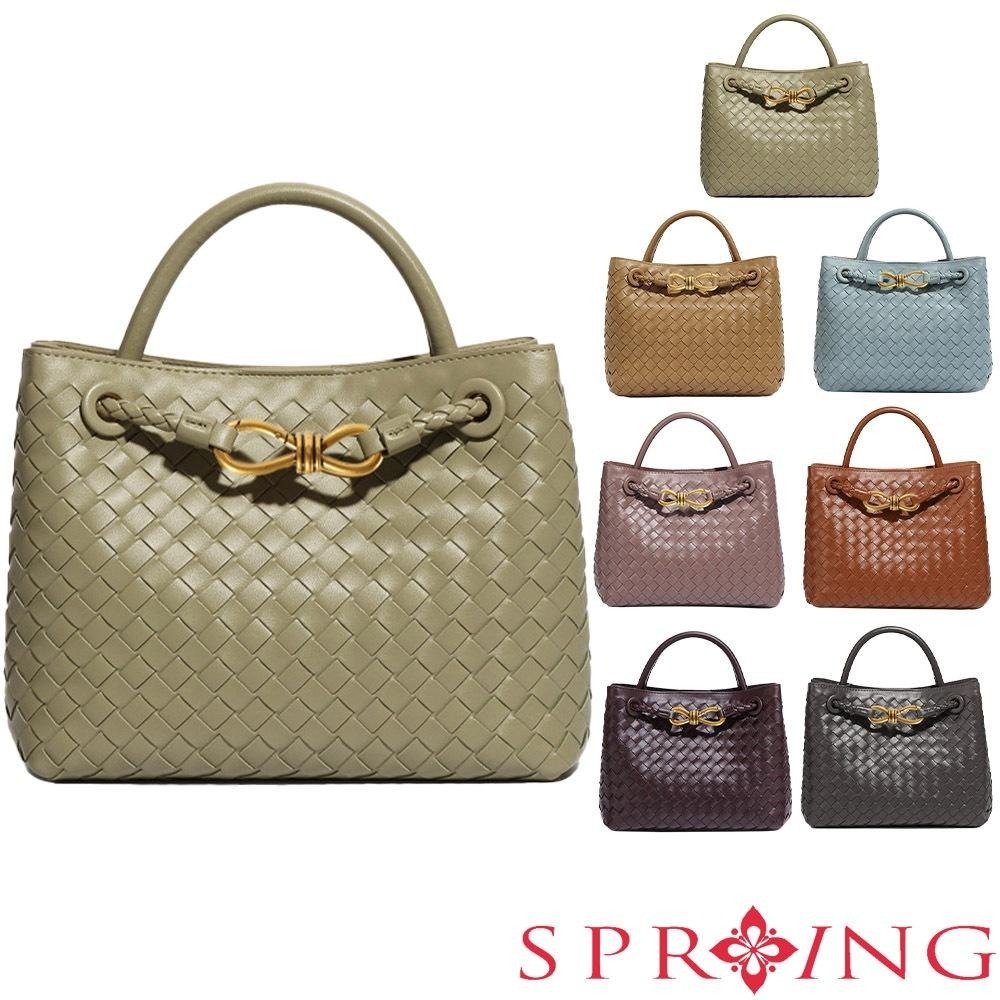 SPRING-時尚手工編織肩背包 簡約質感手提小方包-多色