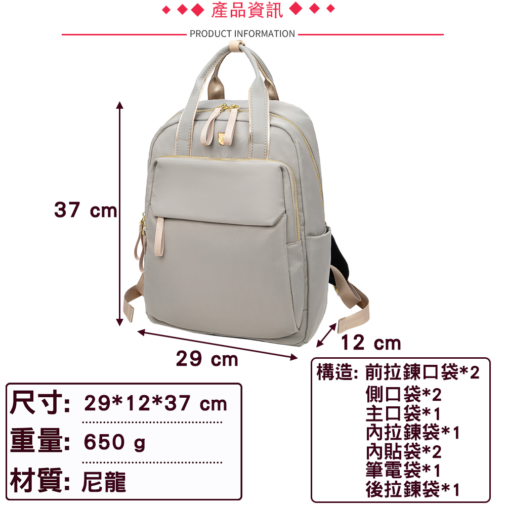 SPRING-尼龍手提後背包韓版時尚商務通勤後背包大容量後背包旅行後背包-多色
