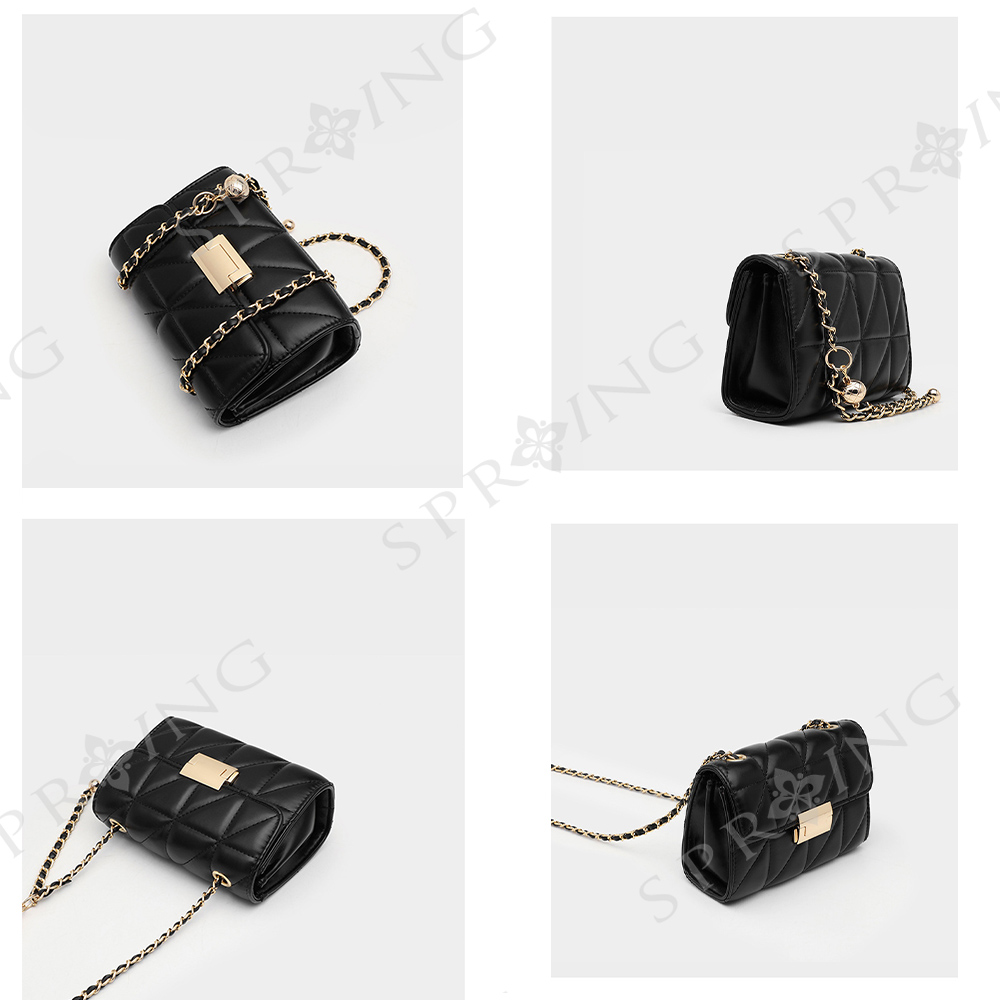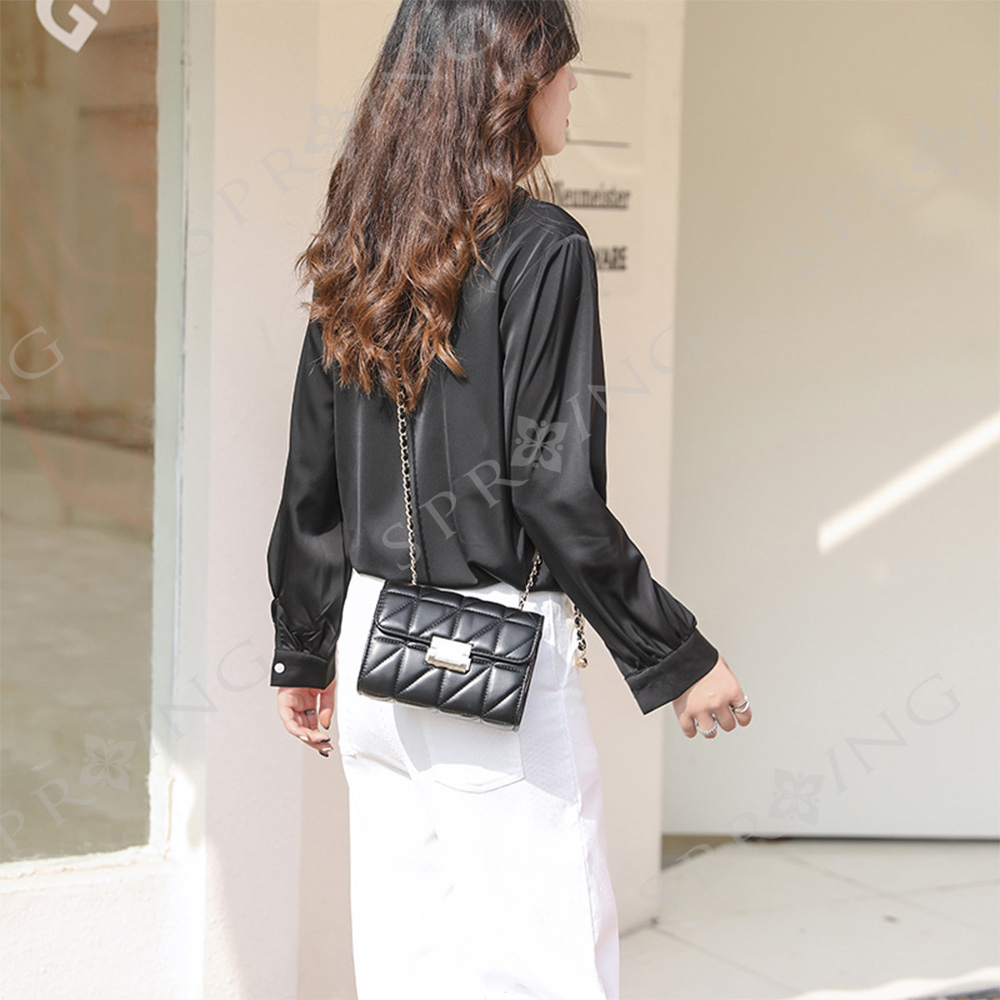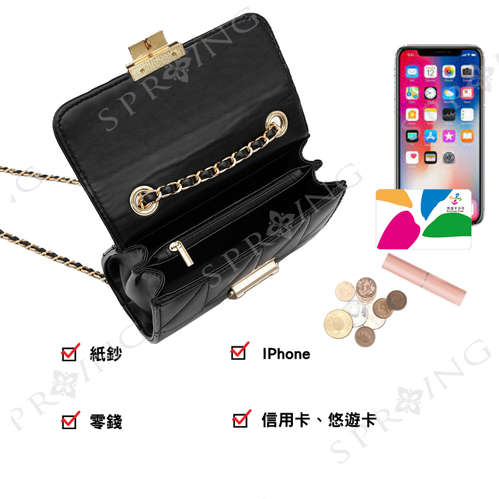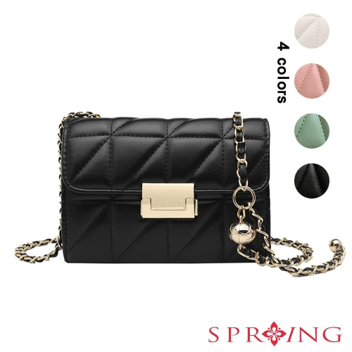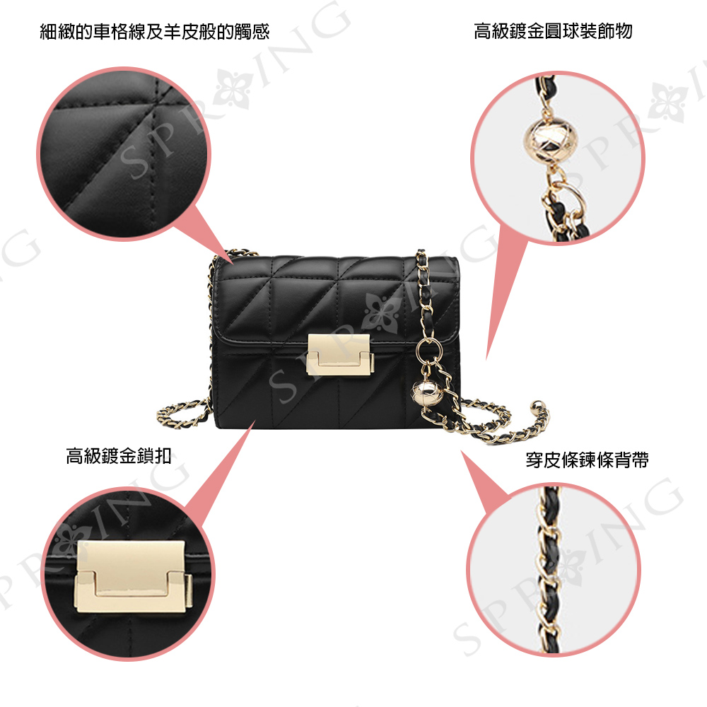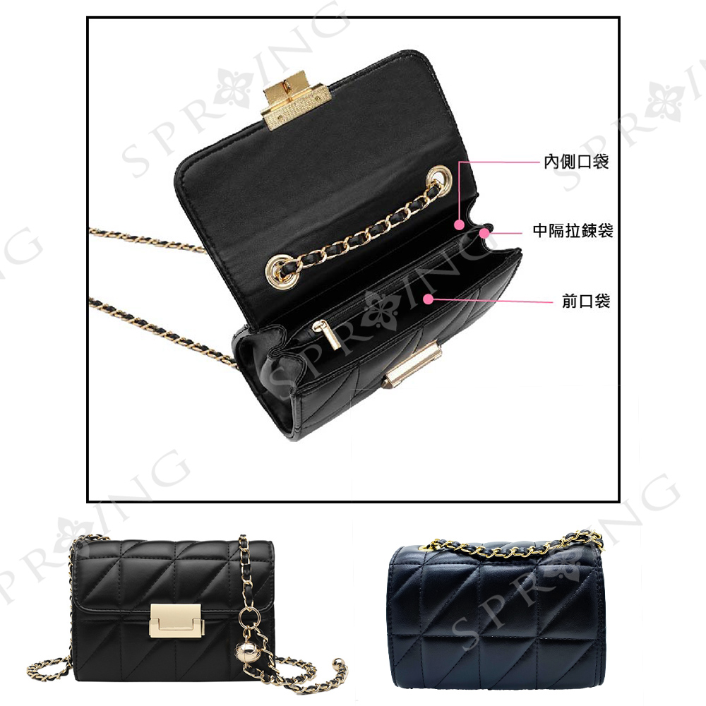 SPRING-菱格小香風鍊條包 刺繡鍊條小斜背包 鐵鍊小方包 -多色