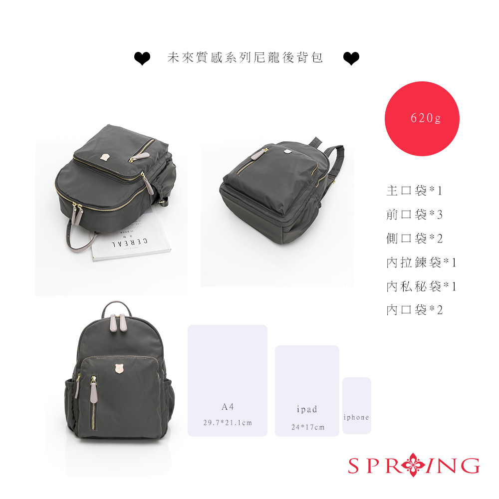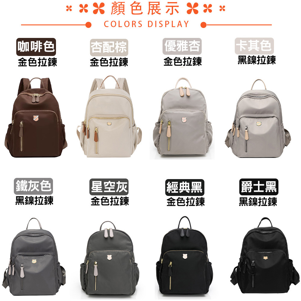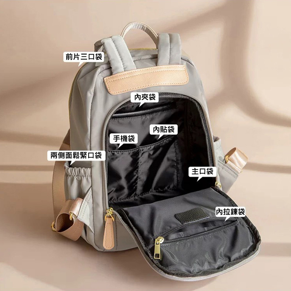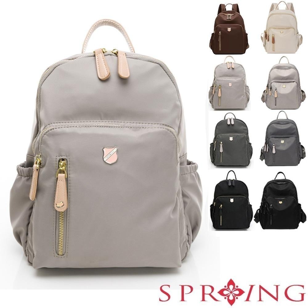 SPRING-尼龍後背包防盜尼龍後背包 多口袋尼龍後背包 防潑水後背包 防盜雙肩包-多色