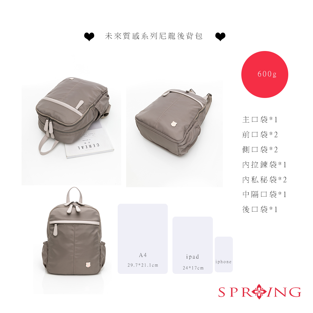 SPRING-經典質感系列尼龍後背包小號 尼龍後背包 防潑水後背包 多口袋後背包 優雅後背包 多收納雙肩包