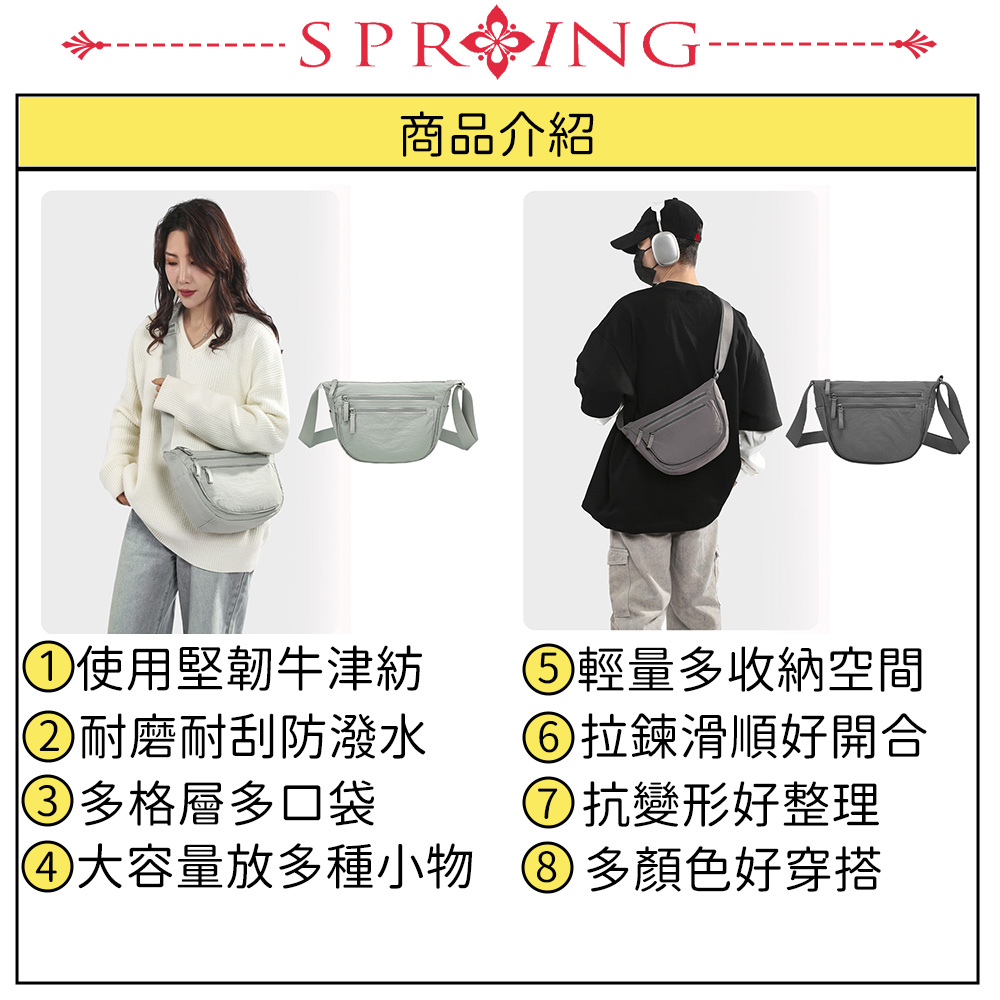 SPRING-簡約百搭斜背包 牛津布尼龍布多口袋肩背包-多色
