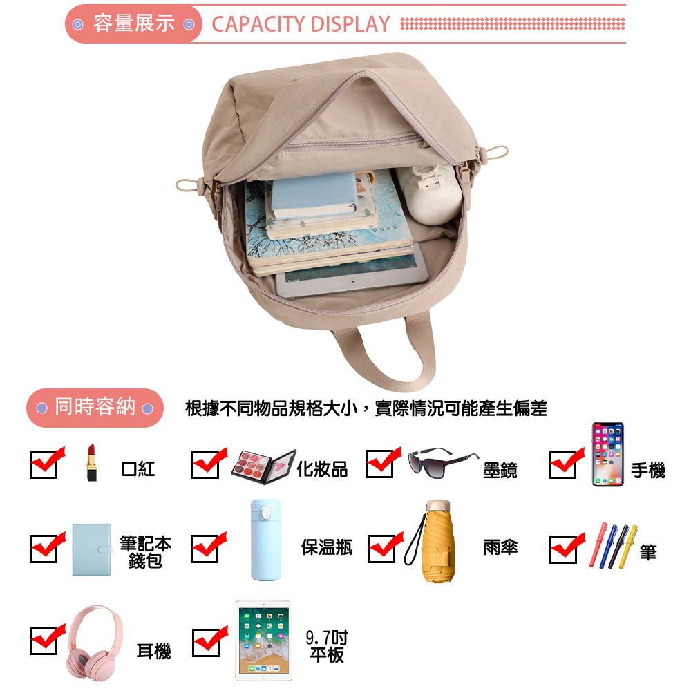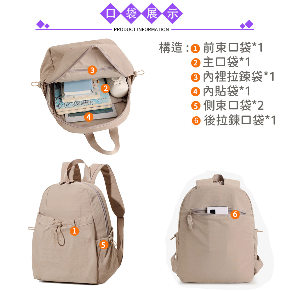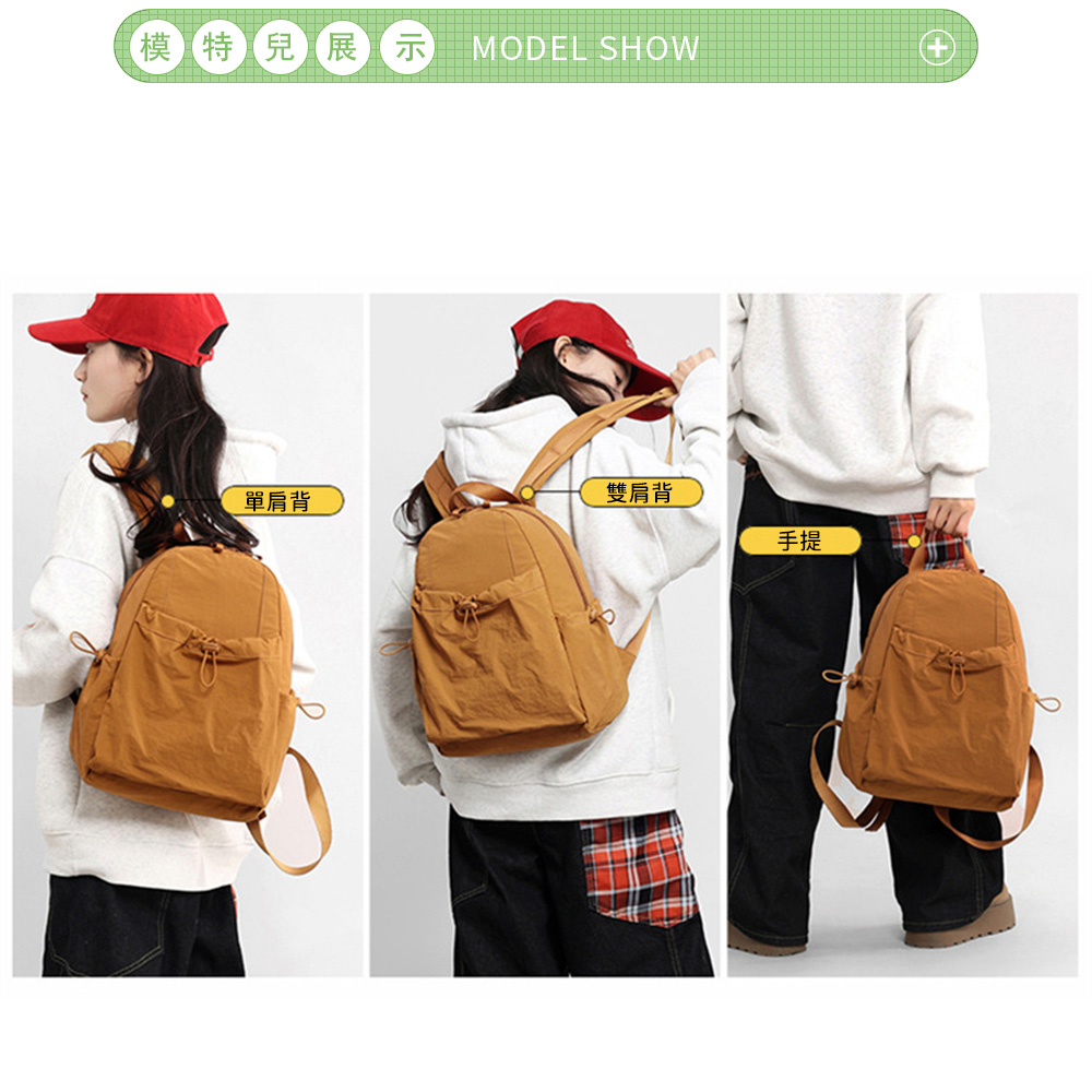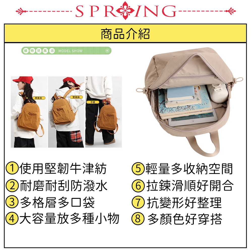SPRING-簡約百搭尼龍後背包 牛津布尼龍布多口袋後背包-多色