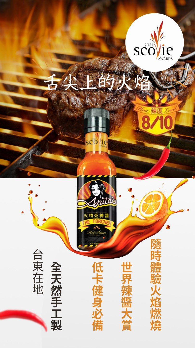 成分:哈巴內羅辣椒, 毒蠍椒,死神椒,米醋,紅蔥頭,金桔乾,台灣原生馬告山胡椒,南薑,鹽
