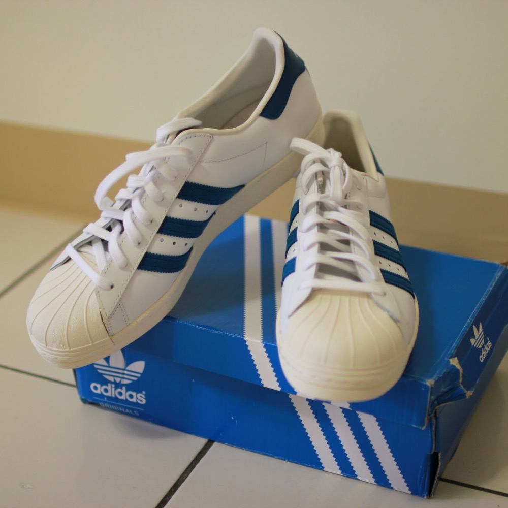 Adidas Superstar 金標 奶油頭 白底藍色邊 皮質 全新正版