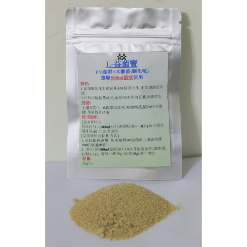 L-益菌寶 ( EM菌 + 木黴菌 ) 可還原成500ml菌種原液 25g/包