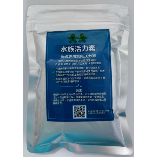 補充飼料中不足的水族活力素,可有效幫助魚蝦的細胞活化、促進新陳代謝、增進環境適應力、促進成長、提高存活率、增進魚蝦成熟產卵等功效,是水族箱必備之營養補充劑。