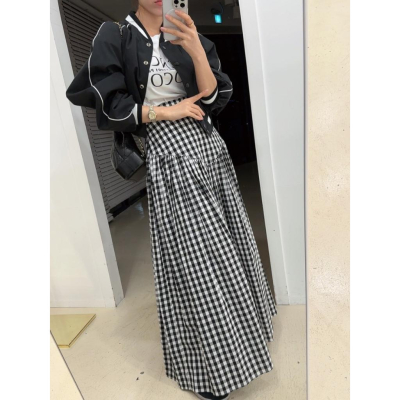 黑色現貨 ⭐𝙈𝙖 𝙘𝙝𝙚𝙧𝙚⭐️ 現貨實拍 高腰收腹感下傘狀長裙 素面長裙 格子長裙 (預+現)