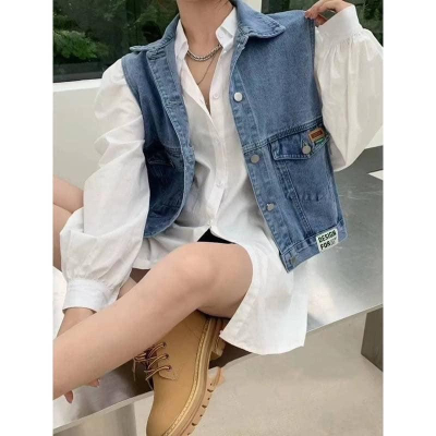 藍色現貨!!⭐𝙈𝙖 𝙘𝙝𝙚𝙧𝙚⭐️ 現貨實拍 下側邊車標牛仔背心