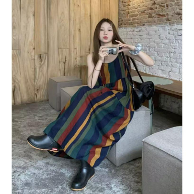 ⭐𝙈𝙖 𝙘𝙝𝙚𝙧𝙚⭐️ 現貨實拍 復古文青彩色條紋背心連身長洋 (預購)