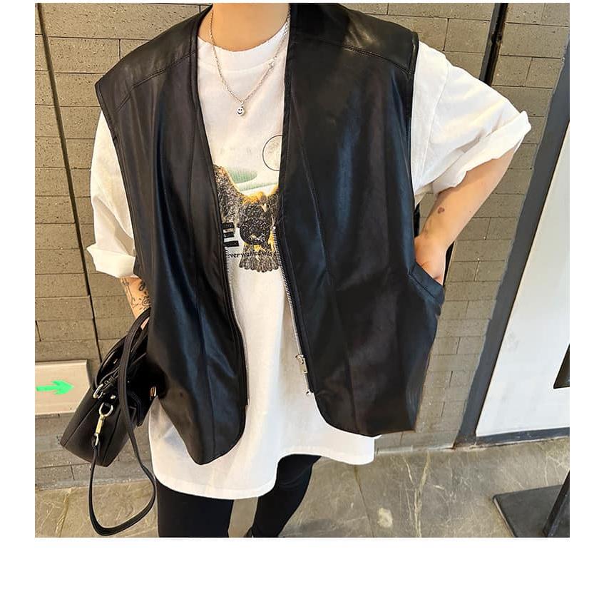 現貨!!⭐𝙈𝙖 𝙘𝙝𝙚𝙧𝙚⭐️ 現貨實拍 開襟V領BF風格皮革背心 棉花糖女孩也穿喔!(預購)