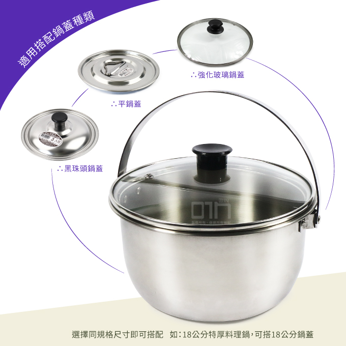 不鏽鋼鍋—304不鏽鋼材質,特厚規格,可搭配不鏽鋼鍋蓋、強化玻璃鍋蓋 組合
