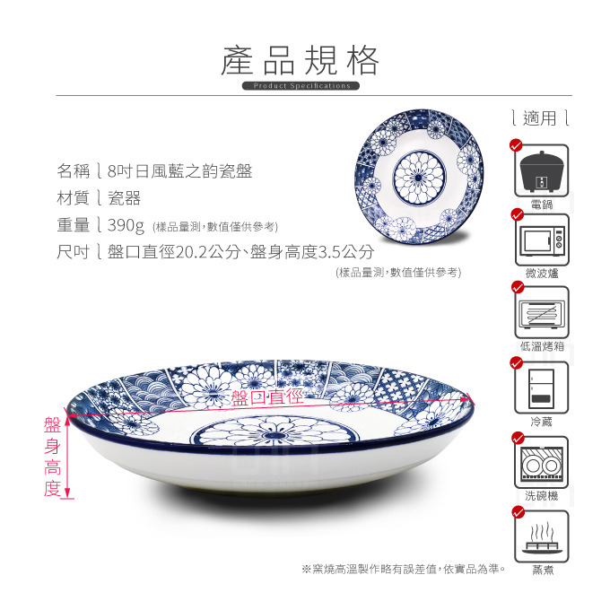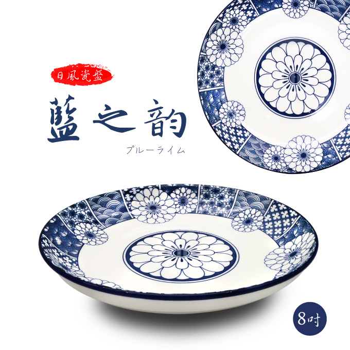 日式 8吋 藍之韵 瓷盤 陶瓷盤 深盤 圓形餐盤 瓷盤 圓盤 湯盤 碗盤組 陶瓷餐盤 碗盤器皿 碗盤 餐具 發票