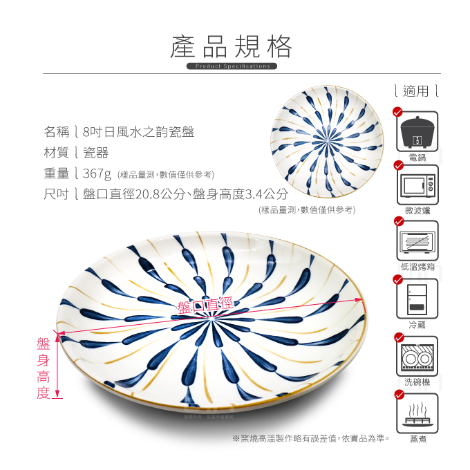 日式 8吋 水之韵 瓷盤 陶瓷盤 深盤 圓形餐盤 瓷盤 圓盤 湯盤 碗盤組 陶瓷餐盤 碗盤器皿 碗盤 餐具 發票