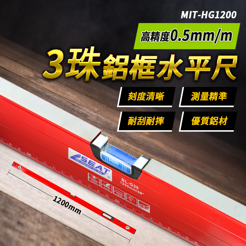 MIT-HG1200_3珠鋁框水準尺(1200mm)