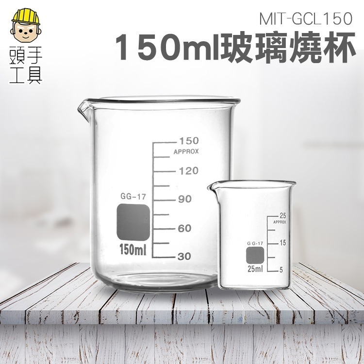 玻璃燒杯 刻度燒杯 廣口燒杯 150ml 高硼硅 低型玻璃燒杯 玻璃量杯 耐熱玻璃杯 【頭手工具】GCL150