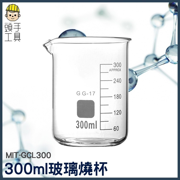 300ml 大燒杯 寬口燒杯 透明燒杯 玻璃燒杯 化學實驗用品 實驗室器材 刻度燒杯 【頭手工具】GCL300
