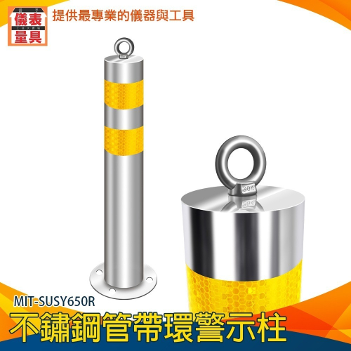 【儀表】SUSY650R 不鏽鋼帶環鋼管警示柱 黃色反光防撞柱 車位樁 隔離柱 分隔桿 不銹鋼地樁 鐵立柱 排隊桿