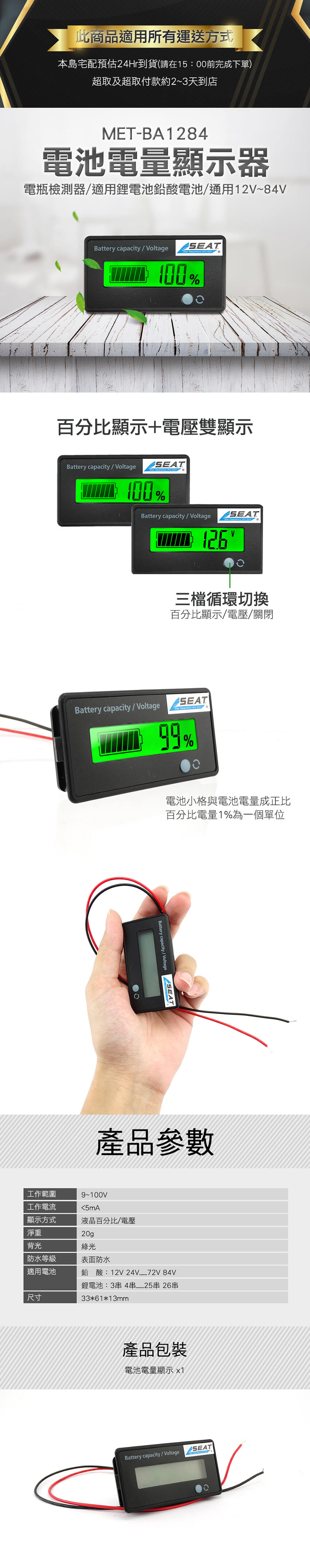 【儀表】MET-BA1284 鋰電池串聯 鉛酸電池 電瓶檢測器 12V~84V 電動車電量 電池電量顯示器 電瓶檢測器