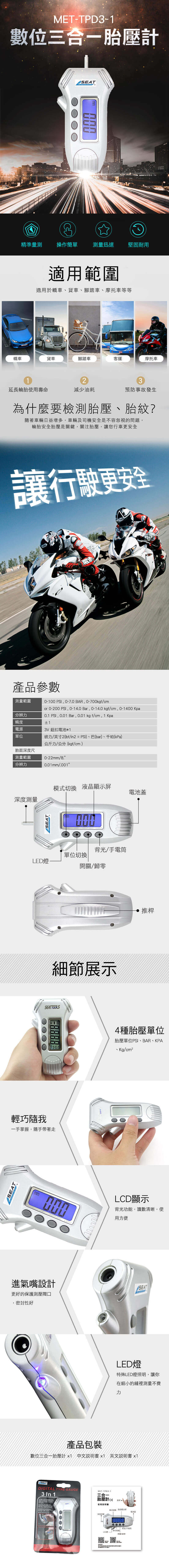 【儀表】MET-TPD3-1 輪胎壓力測試器 汽機車輪胎胎紋計 胎壓檢測儀 數位胎壓計 3合1胎壓胎紋儀 胎壓監測儀