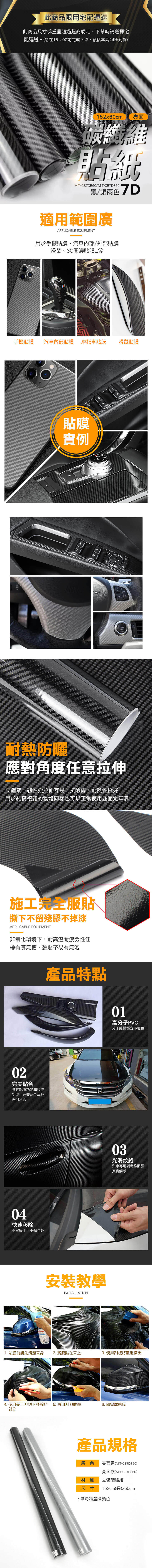 碳纖維貼紙可用於手機包膜、汽車內部、外部貼膜,3C用品貼膜等,方格紋路7D立體質感,防曬耐熱、抗酸雨、耐熱性級好,帶有導氣槽,黏貼不藝起泡,結構複雜的物體同樣也可以正常貼合。