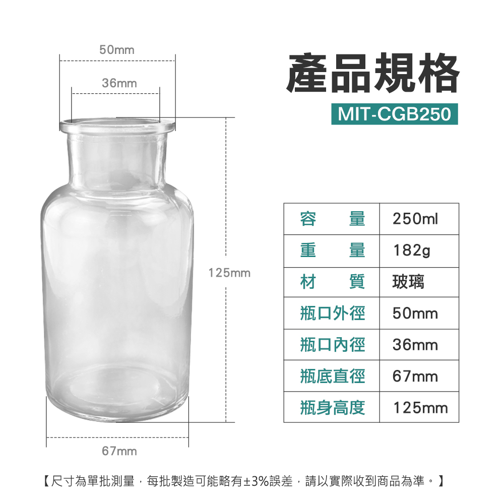 【儀表】CGB250 集氣瓶 實驗器材 氣體收集瓶 廣口瓶 試劑瓶 細口瓶 血清瓶 寬口瓶 玻璃集氣瓶250ml